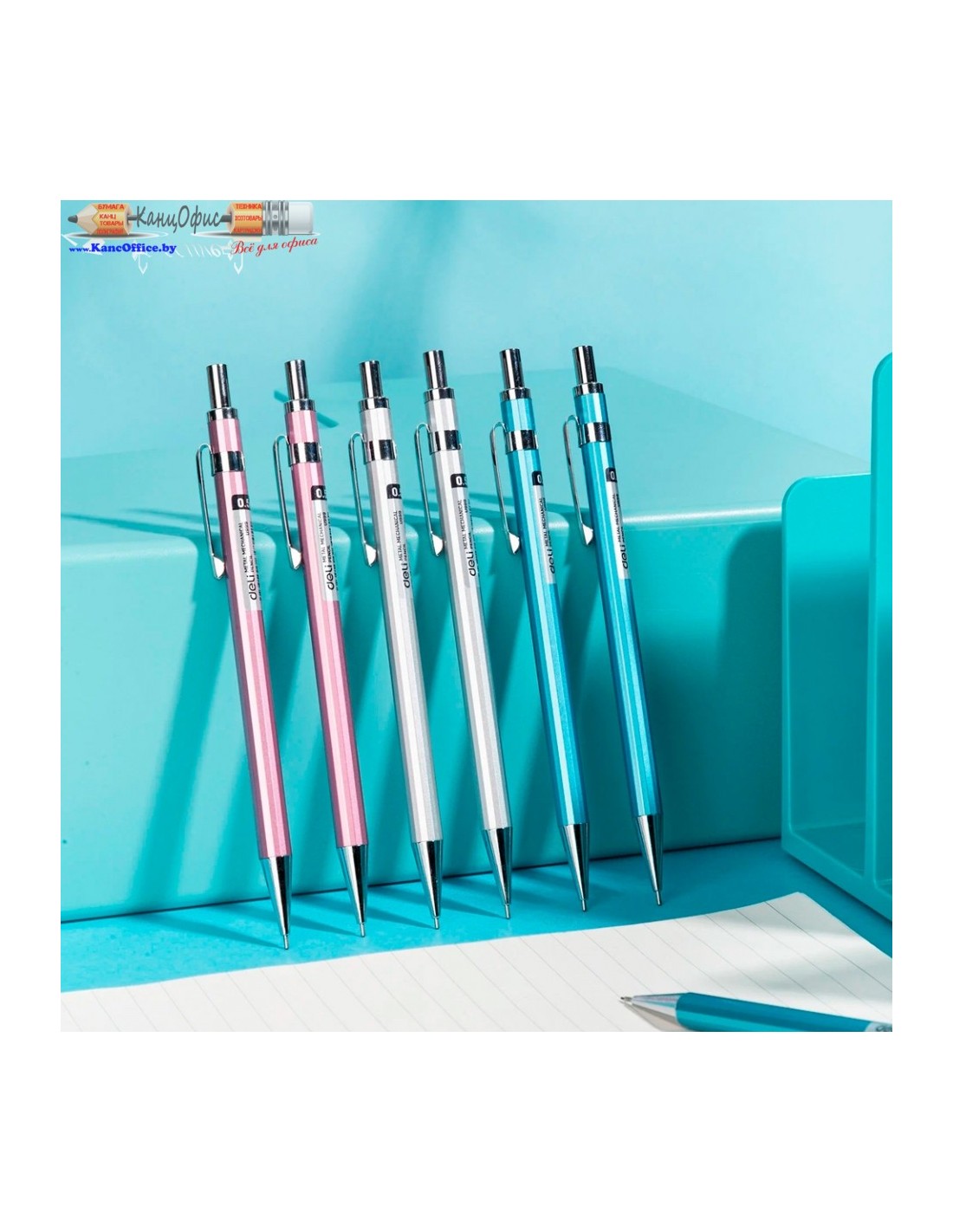 Автоматический карандаш от известного бренда Deli в ярком современном дизайне. Тонкий стержень 0,5 мм подходит для точного рисования и черчения. Корпус карандаша оснащен ластиком и клипом. Корпус карандаша металлический. Металлический наконечник. В ассортименте 3 цвета корпуса: розовый, серебряный и голубой.