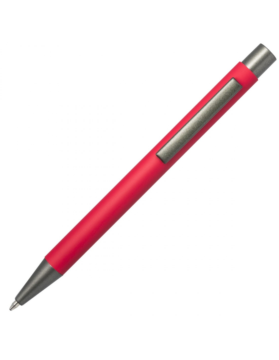 Металлическая шариковая ручка с нажимной механикой. Цветной корпус с двухслойным покрытием. Верхний слой — soft-touch. Нижний слой — серебристый глянец. Антрацитовые клип, наконечник, кнопка. Пластиковый стержень с синими чернилами. Толщина пишущего узла 1,0 мм.