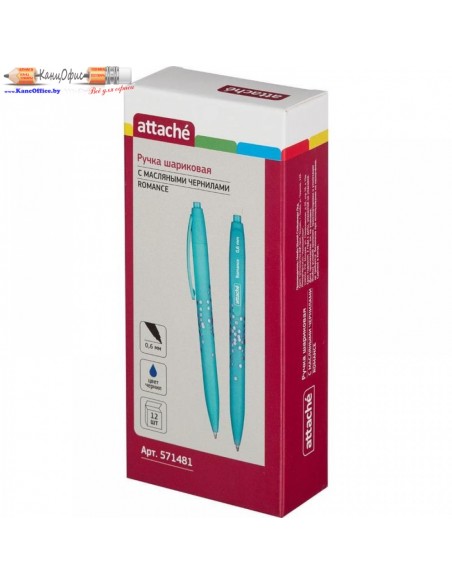 Ручка шариковая Attache Romance — это стильный дизайн и отличное качество! Модель имеет автоматический механизм, изготовлена из пластикового корпуса с матовой поверхностью. Цвет корпуса зеленый. Приятное на ощупь покрытие Soft touch не скользит и делает письмо особенно комфортным. Сменный стержень длиной 107 мм снабжен стандартным наконечником и заправлен высококачественными масляными чернилами синего цвета. Диаметр пишущего узла 1 мм создает тонкую линию письма, равную 0,6 мм.