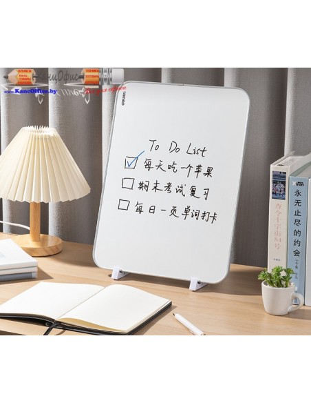 Доска магнитно-маркерная DELI, настольная, белая в серебристой рамке, 400*300 мм, на подставке, 2 маркера, 2 магнита