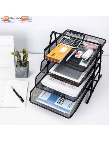 Горизонтальный четырёхсекционный лоток для бумаг Deli компактно сохранит на рабочем столе документацию, проспекты, каталоги и другую продукцию формата А4. Лотки могут использоваться отдельно от опоры. Выдвижной механизм обеспечивает легкий доступ к содержимому лотков. Изготовлен из высококачественной прочной металлической сетки.