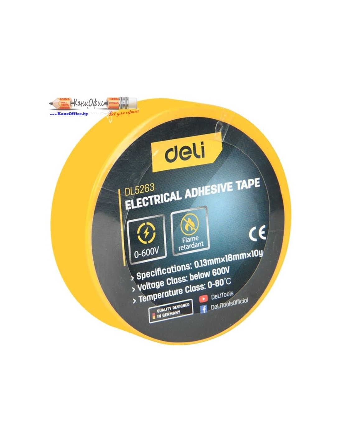 Высококачественная изолента Deli используется для изоляции при электротехнических работах, жгутирования проводов и кабельных соединений. Изолента обладает высокой прочностью, эластичностью, морозостойкостью, не подлежит горению.