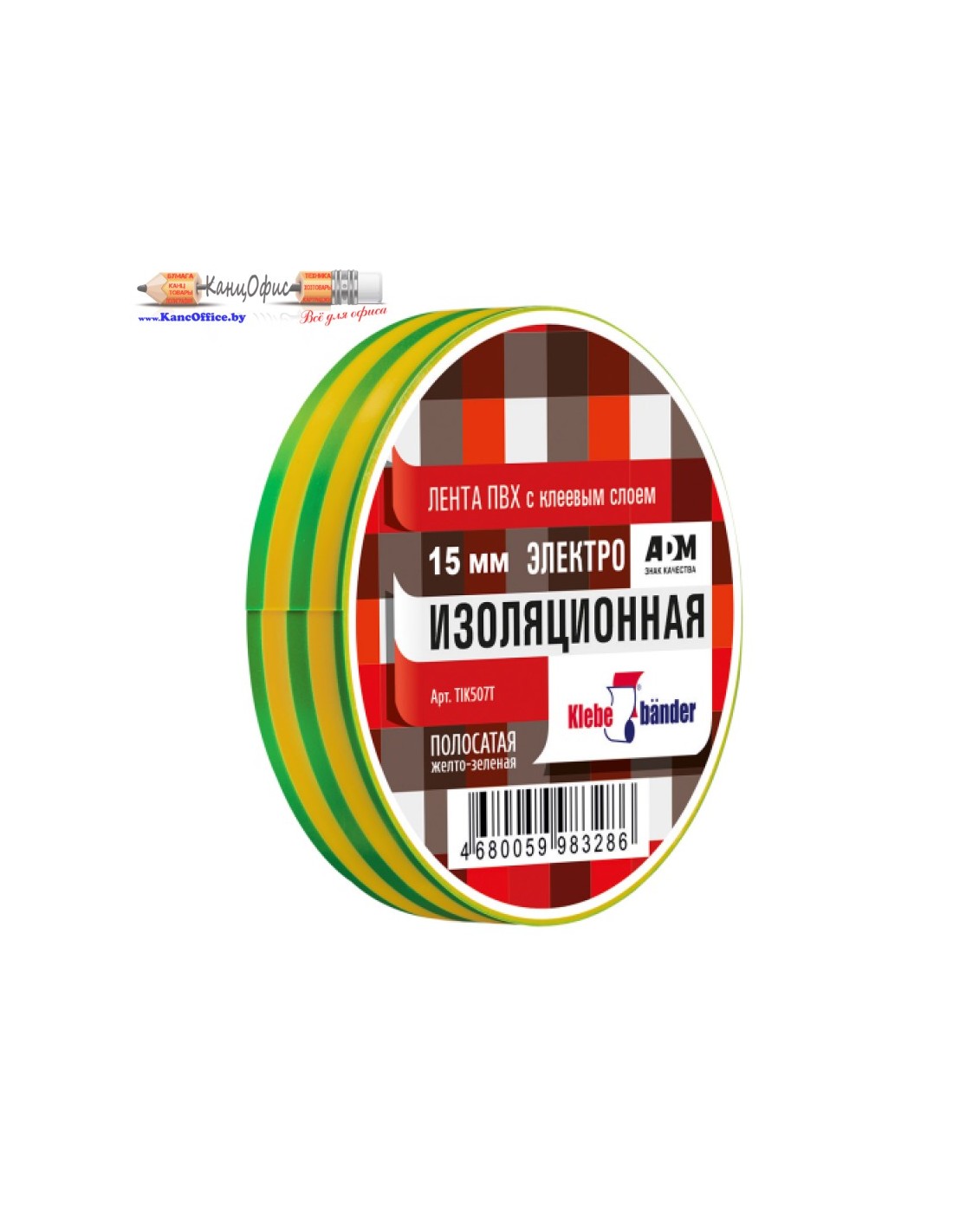 Изолента ПВХ 15х20 Klebebander (TIK507T), 130 мкн, в и/у, желтая, зеленая