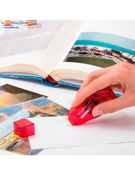Клей-роллер "Kores" от известного производителя изготовлен для склеивания таких материалов как: бумага, картон или ткань. Идеально подходит для фотоальбомов, презентаций, оформления подарков и упаковки.