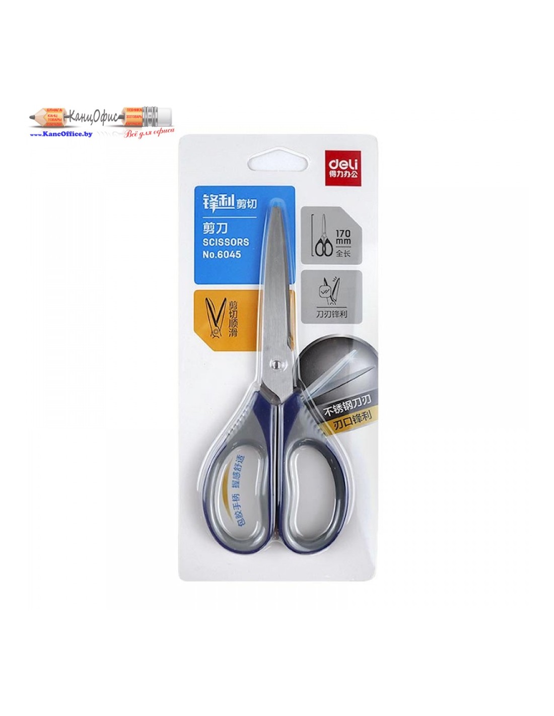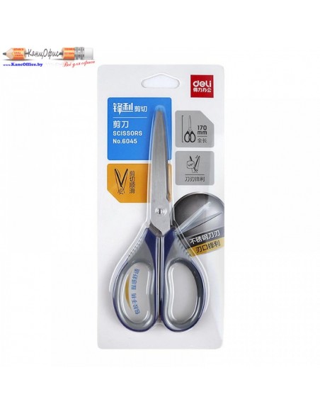Ножницы Deli 6045, 17см, симметричные ручки, ассорти