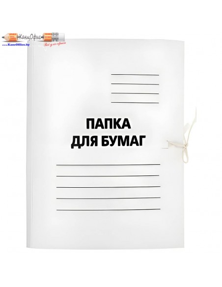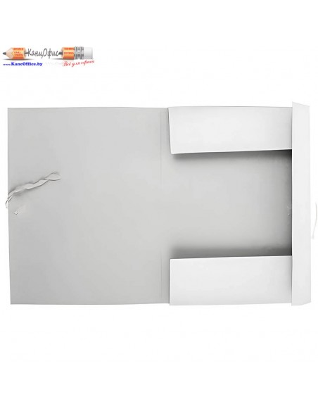 Папка из мелованного картона (440 г/м²) для хранения и транспортировки документов формата А4. Закрывается на завязки, оснащена трёхсторонними клапанами. Ширина корешка 20 мм, вместимость — до 200 листов. Лицевая сторона имеет разметку для маркировки. Подходит для делопроизводства и архива.