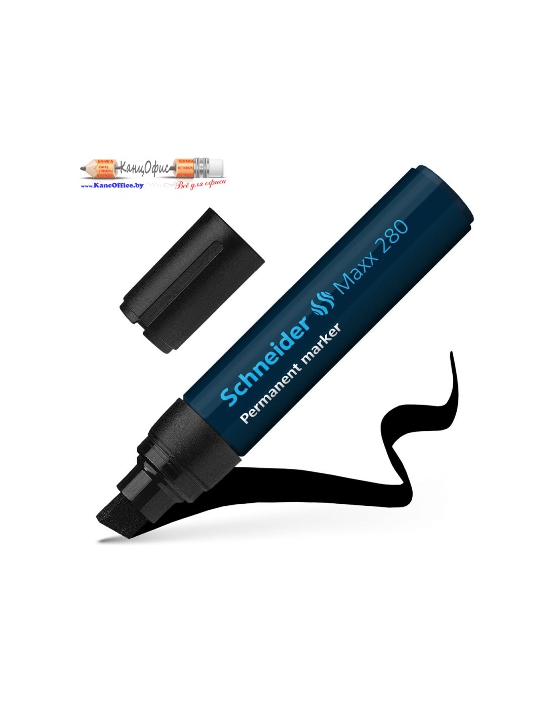Перманентный маркер с клиновидным наконечником, толщина линии 4+12 мм. Цвет письма – чёрный. Подходит для письма по картону, бумаге, пластику, стеклу, металлу, дереву и практически всем другим материалам. Надпись быстросохнущая, водостойкая и очень светостойкая. Чернила не высыхают даже при снятии колпачка в течение 2-3 дней. Маркер практически не имеет запаха и не содержит толуола и ксилола.