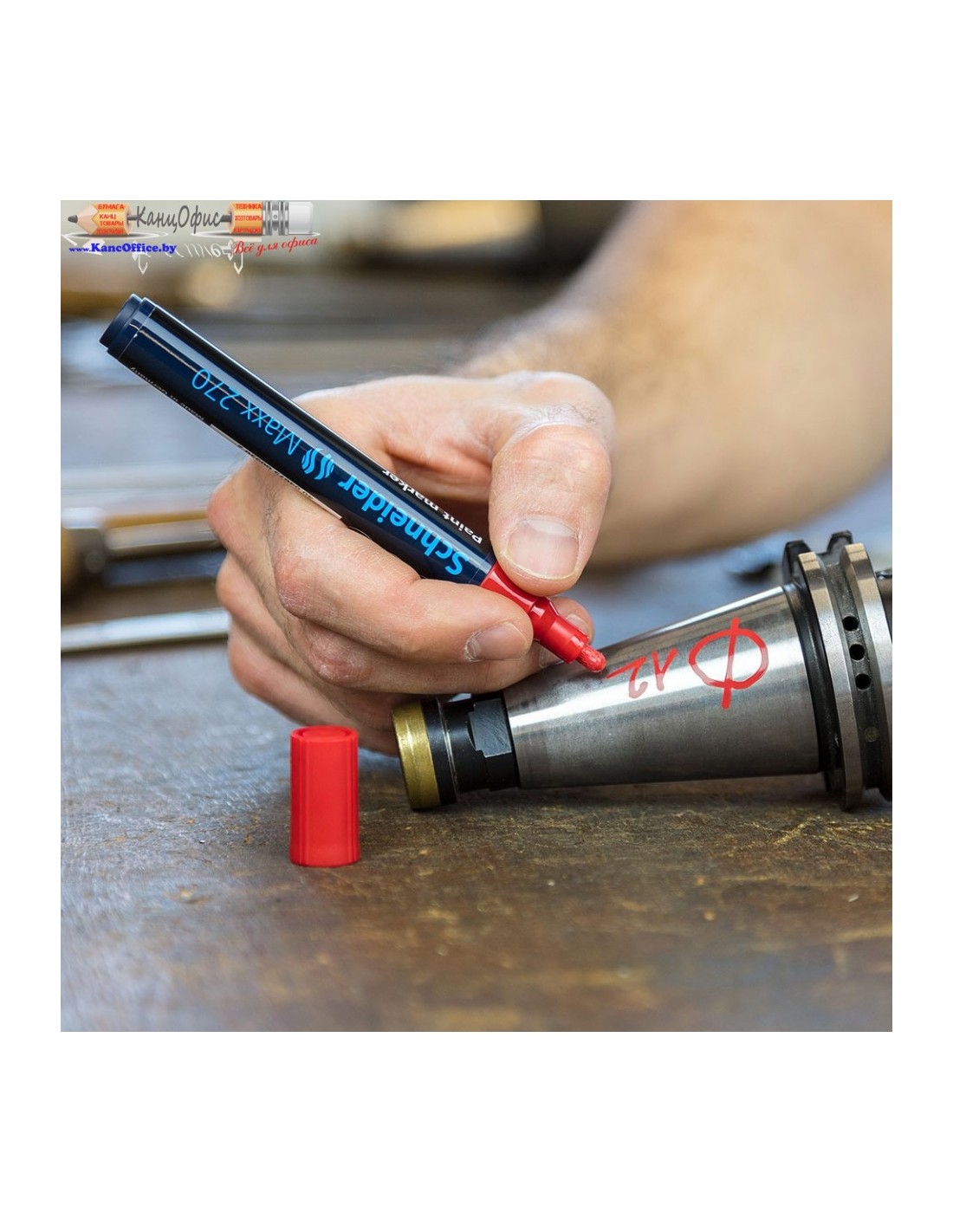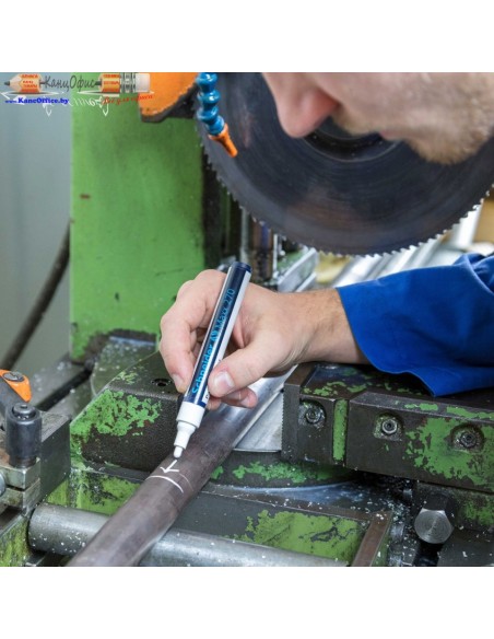 Маркер с пулевидным наконечником идеально подходит для маркировки и декорирования шероховатых и гладких поверхностей, например, бумаги, пластика, стекла, керамики, металла, кожи, резины и т. д. Наносимые маркировки отличаются высокой непрозрачностью, устойчивостью к стиранию практически на всех материалах, светостойкими, водостойкими и термостойкими до 300 °C свойствами.