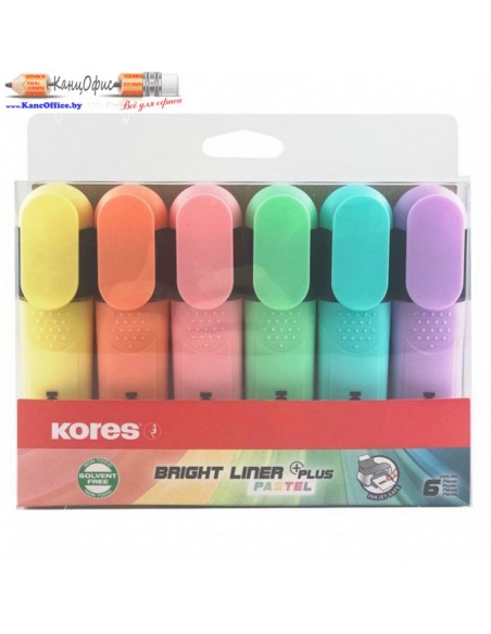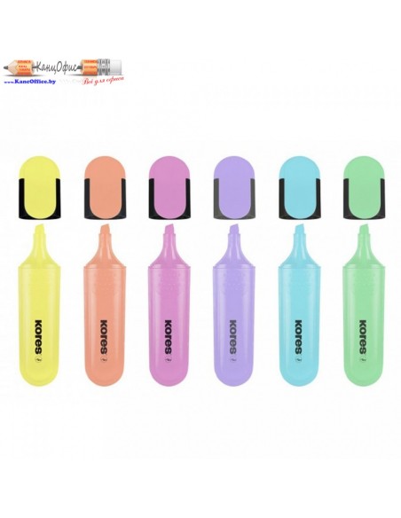 Набор текстовых маркеров в пастельных тонах от бренда Kores в стильном дизайне. Универсальные чернила на водной основе. Подходят для всех типов бумаги. Не сохнут даже при длительном открытии. Маркеры имею эргономичную форму с зоной захвата для более удобного использования. Ширина линии 0,5-5 мм. Отличный вариант для офисных работников, студентов и школьников.